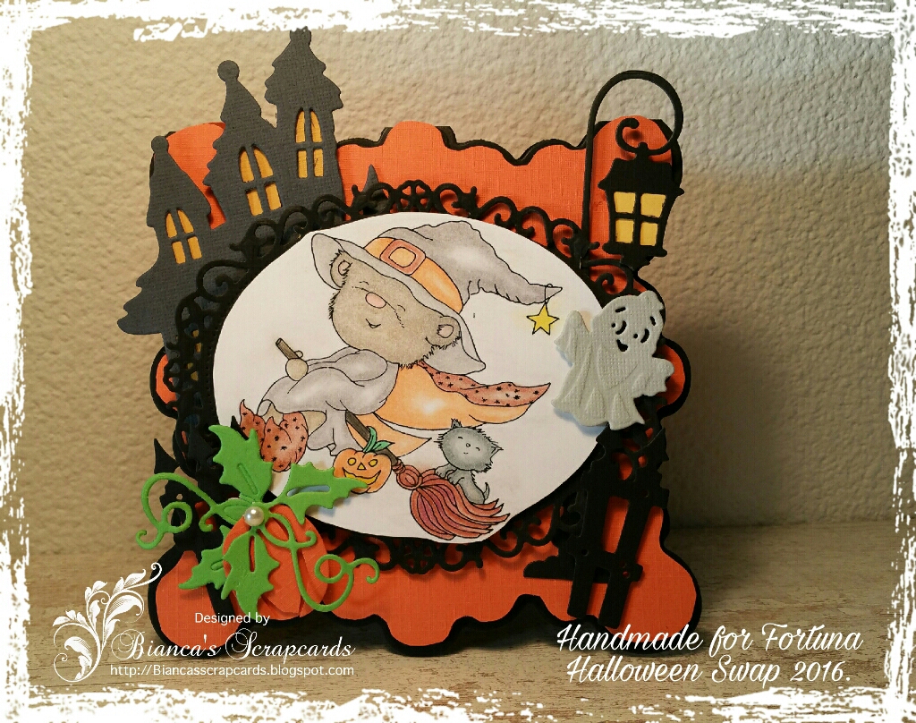 Deze kaart heb ik gemaakt voor Fortuna in de Halloween Swap 2016.
